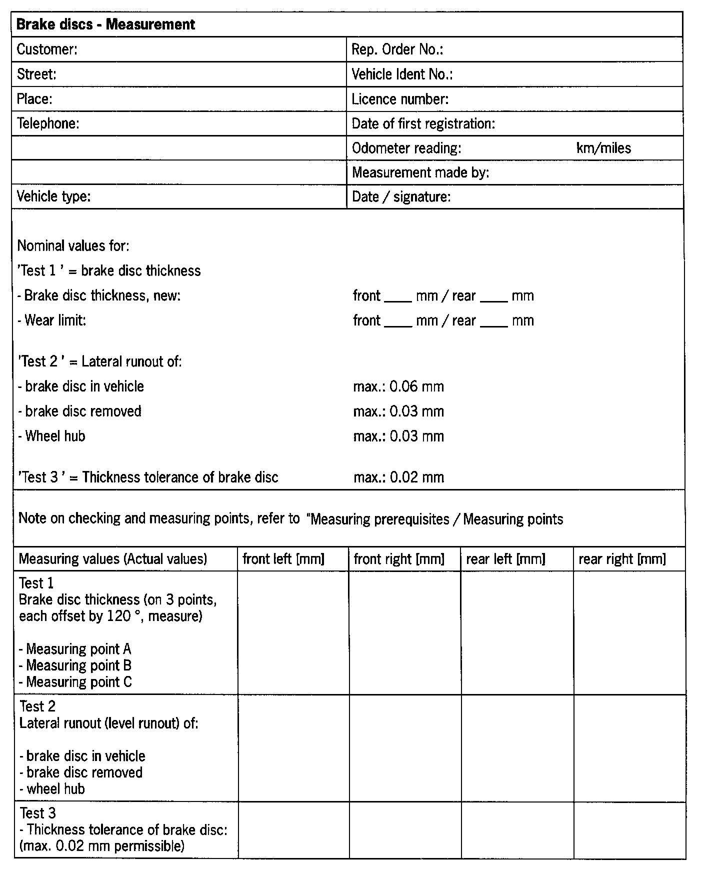 4. If brake discs are to be replaced, carry out 'Test 2', with the new discs again and enter the current values in a new alignment card.