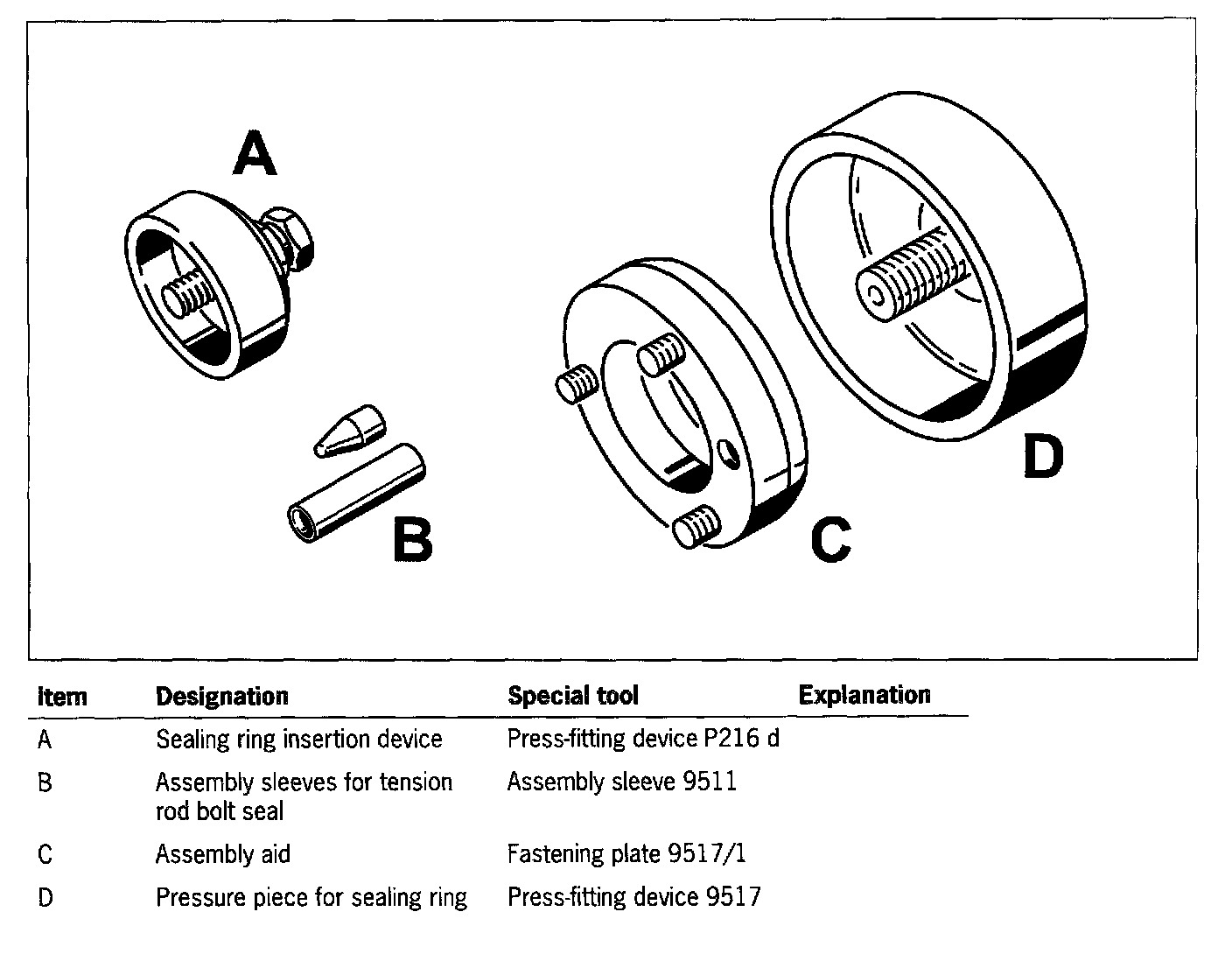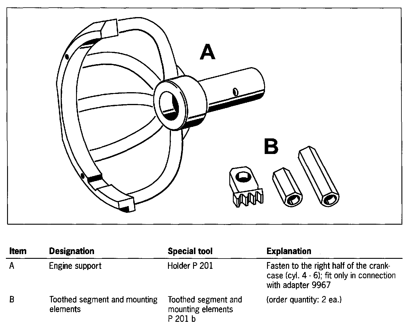Two additional threaded holes must be made before the special tool is screwed together with engine holder P201 for the first time.
