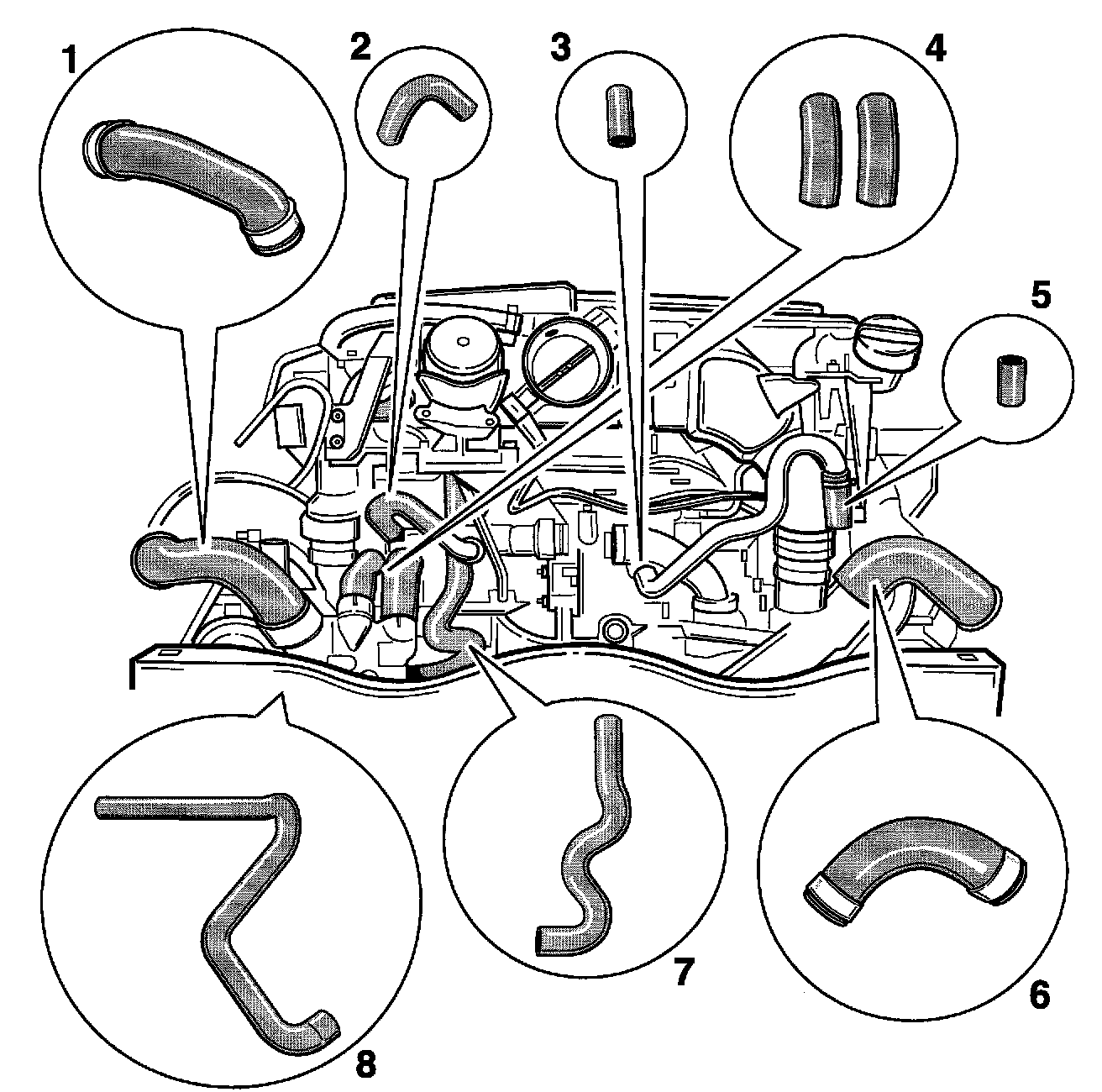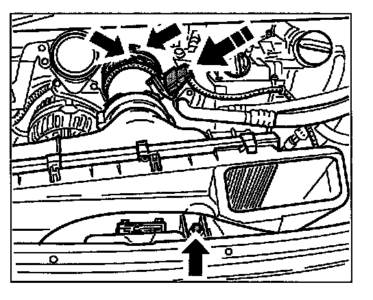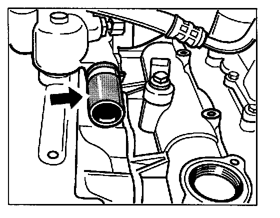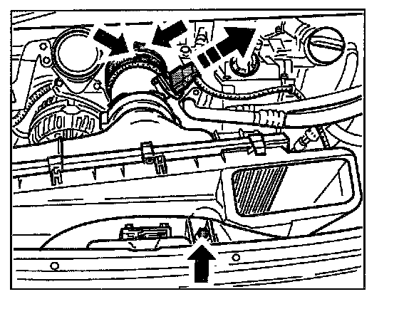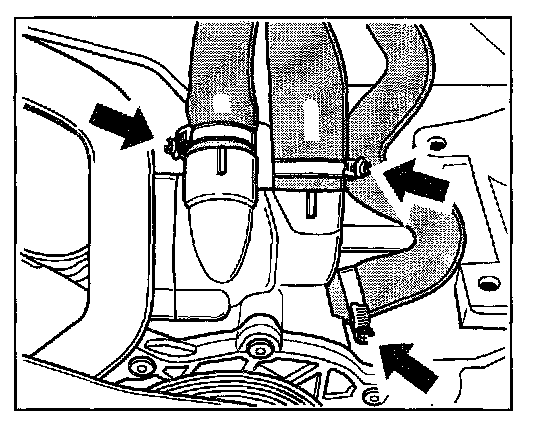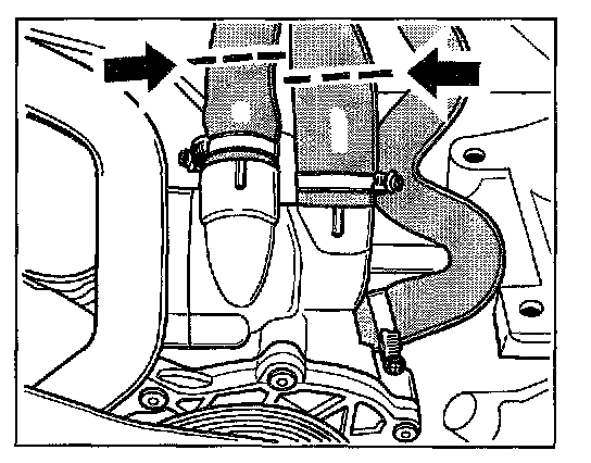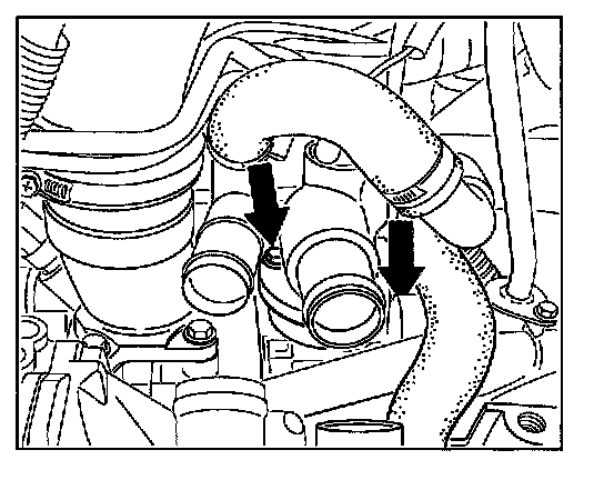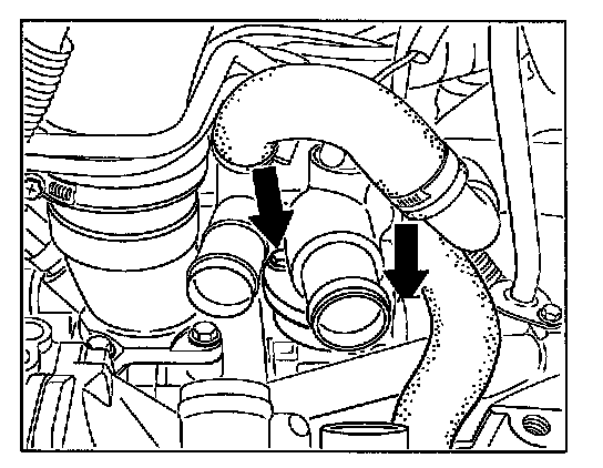 24. Cut coolant hoses, e.g. with a knife, at the positions shown -arrows-. Pull off the hose residues.