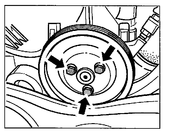 8. Unscrew the three already loosened fastening screws of the belt pulley and remove the belt pulley from the hydraulic pump.