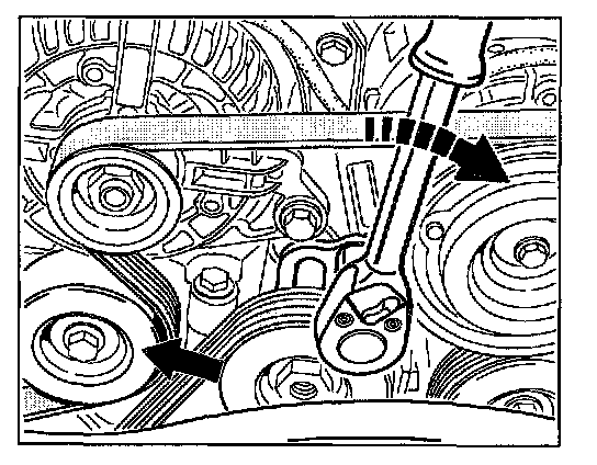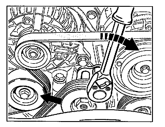 7. Relieve drive belt. To do this, turn the tensioning lever of the tensioning roller clockwise with a socket wrench (a/f 15) and hold, remove the belt from the drive pulleys of the air-conditioning compressor, hydraulic pump and the generator.
