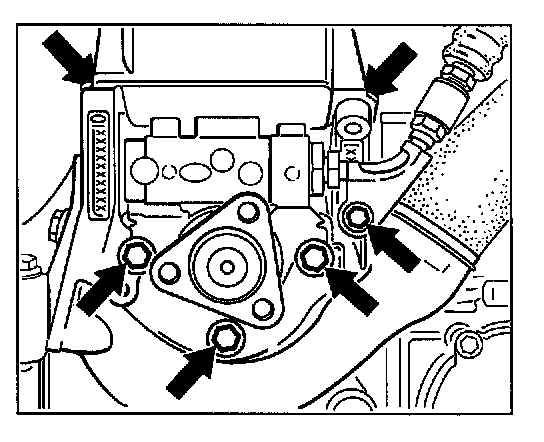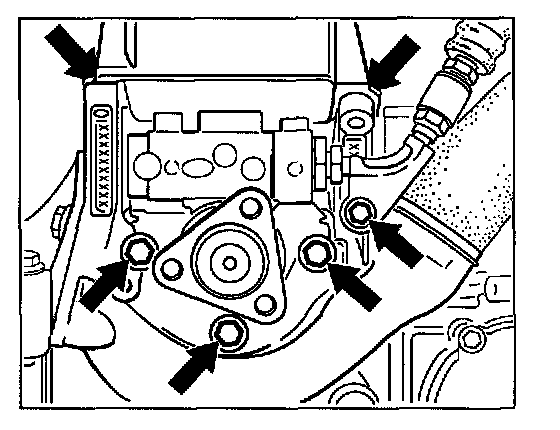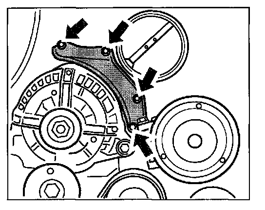 22. Undo generator bracket. Loosen the four fastening screws -arrows- and pull the generator bracket to the right and remove.