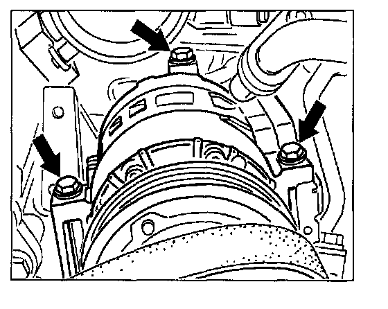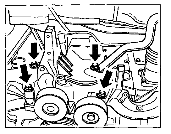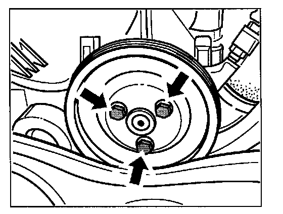 14. Loosen three hexagon-head bolts on the air-conditioning compressor.