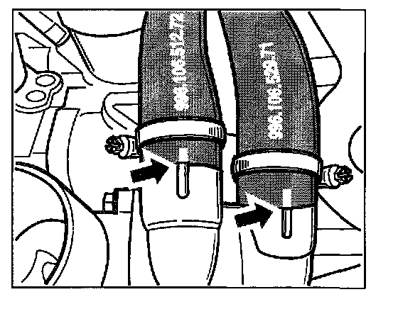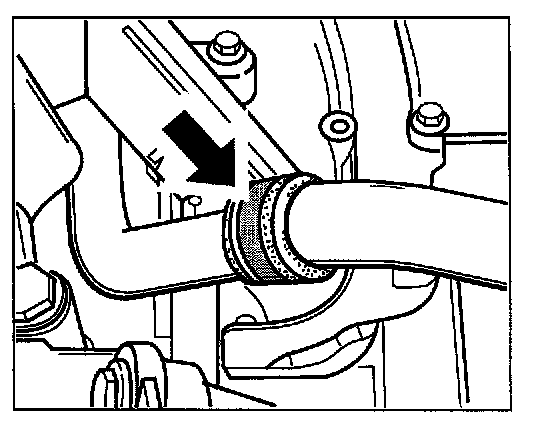 23. Undo hose clamps on the coolant hoses. To do this, open the hose clamps -arrow-.