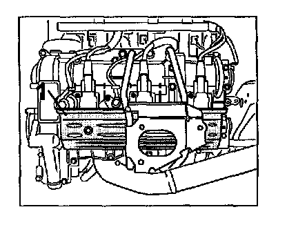 NOTE: The rear muffler must be removed and the holder must be detached before the hydraulic valve on cylinder bank 4 - 6 can removed.