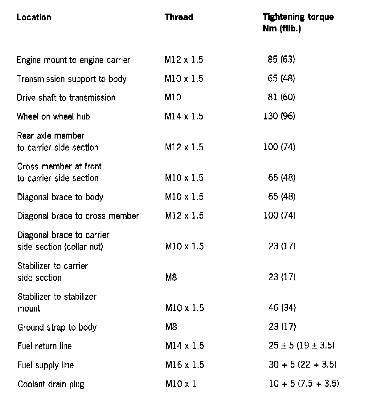 Tightening torques