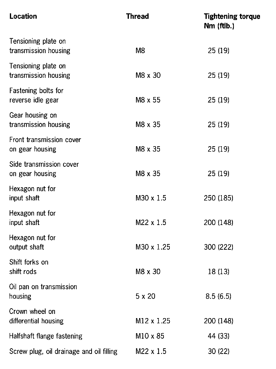 Tightening Torques