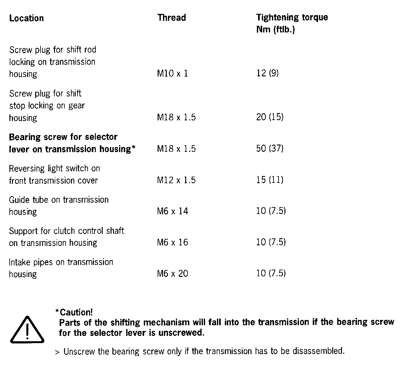 Tightening torques, manual transmission G96/90