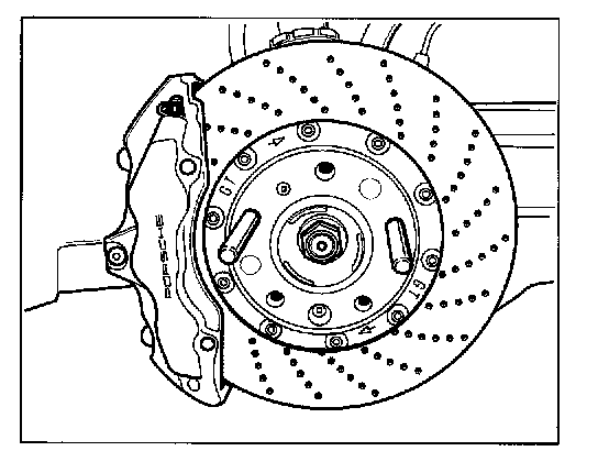 For vehicles equipped with PCCB option (Porsche Ceramic Composite Brake), use assembly aids (assembly pins) for wheel removal/installation, in order to exclude any possibility of heavy contact of the wheel with the brake disc.