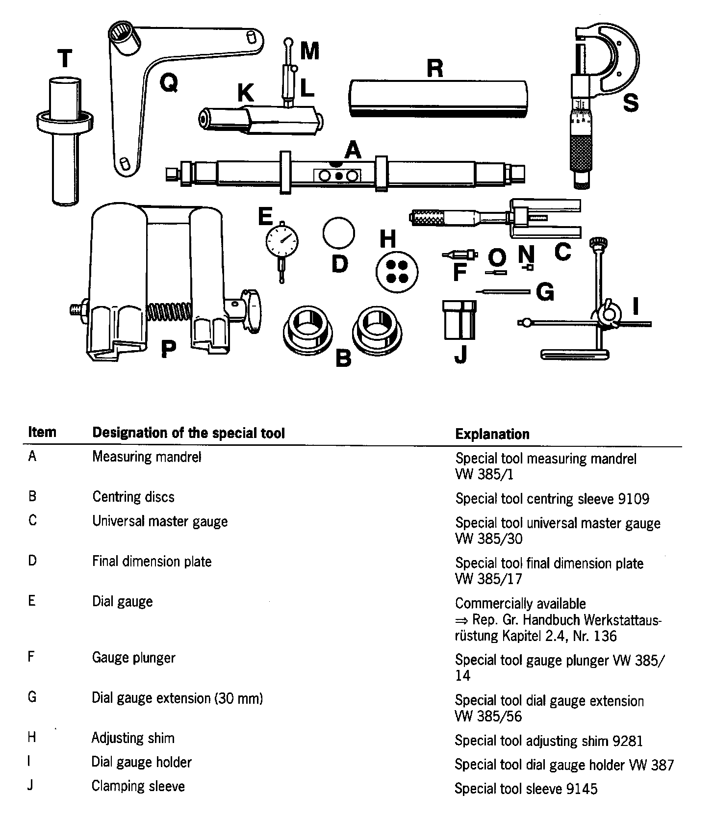 6. Set the setting collar on special tool measuring mandrel VW 385/1 to the dimension a (approximately 65 mm).