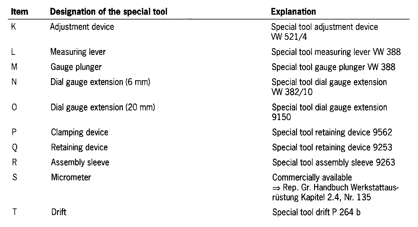 Note! As the adjusting shims are available in thicknesses from 1.5 to 2.8 mm in increments of 0.05 mm, the calculated result must be rounded off. However, the total of the disc thicknesses S1 + S2 must not be changed. To determine the thickness, measure the adjusting shims at several places with a micrometer. The discs should also be checked for burrs and damage.