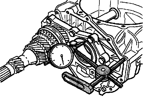 5. Press the outer bearing race backwards as far as possible and read the play off the dial gauge.