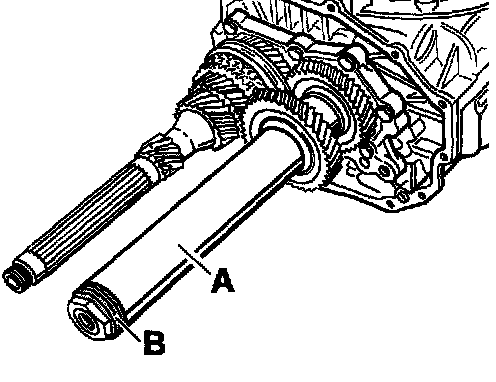 4. Push special tool assembly sleeve 9263 -A- and discs (Part No. 950.302.296.03) -B- on to the output shaft.