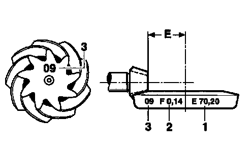 8. Read off the installation dimension E from the crown wheel.