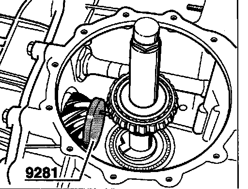 10. Place special tool adjusting shim 9281 on the pinion head of the output shaft.