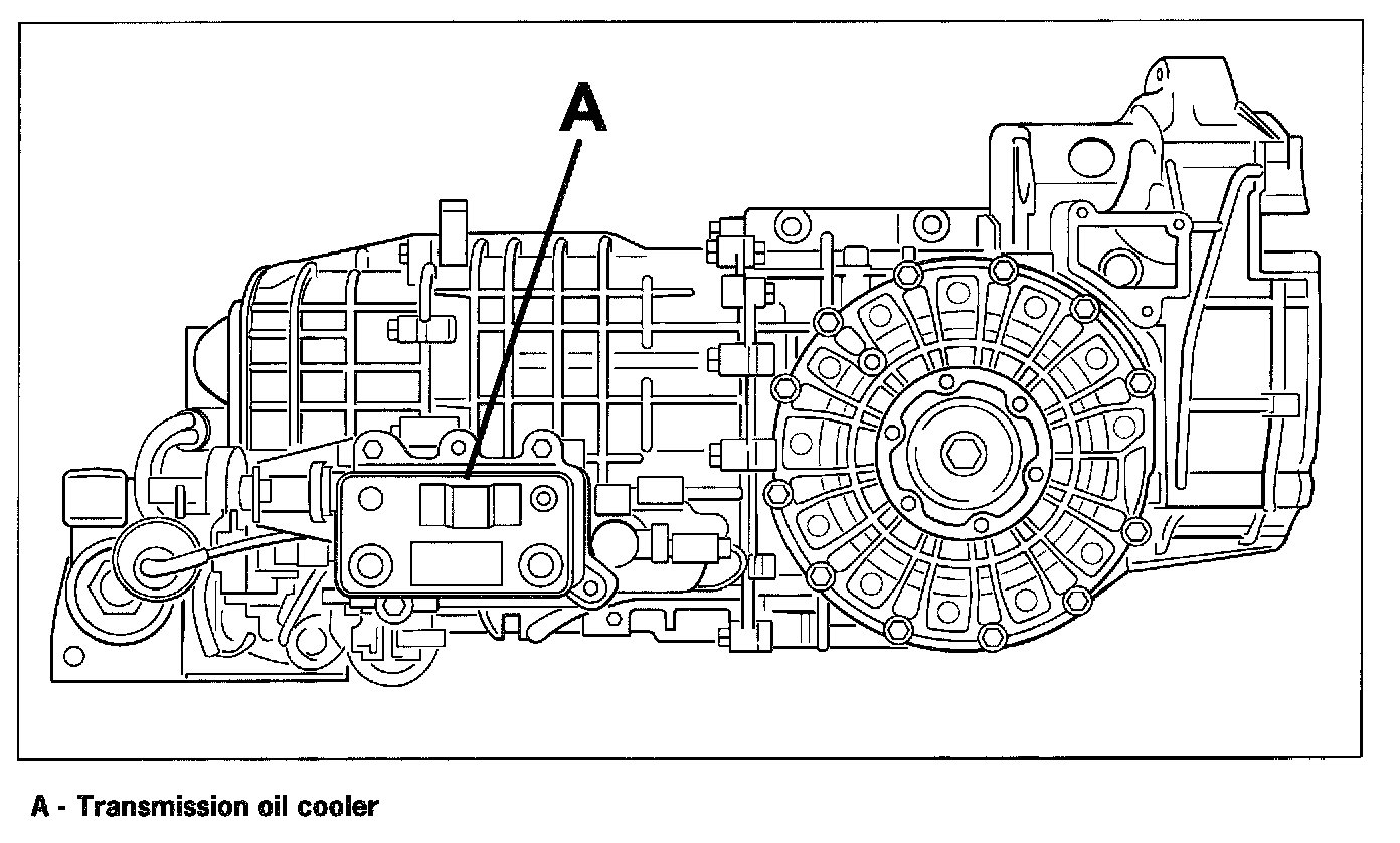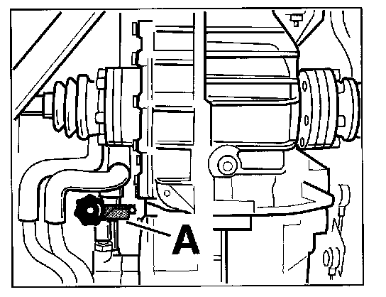 7. Unscrew the transmission oil connecting line -A- between the oil cooler and the transmission on the transmission oil cooler.