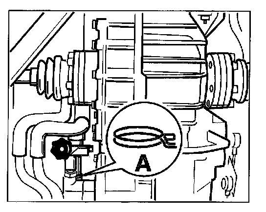 10. Undo the spring band clamp -A- and pull off the coolant hose.