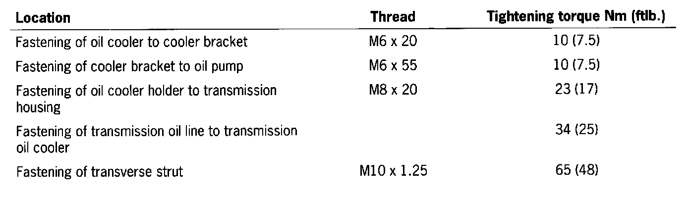 NOTE: Grease the thread of the transmission oil connecting line, e.g. with 'Optimol optimoly paste'.