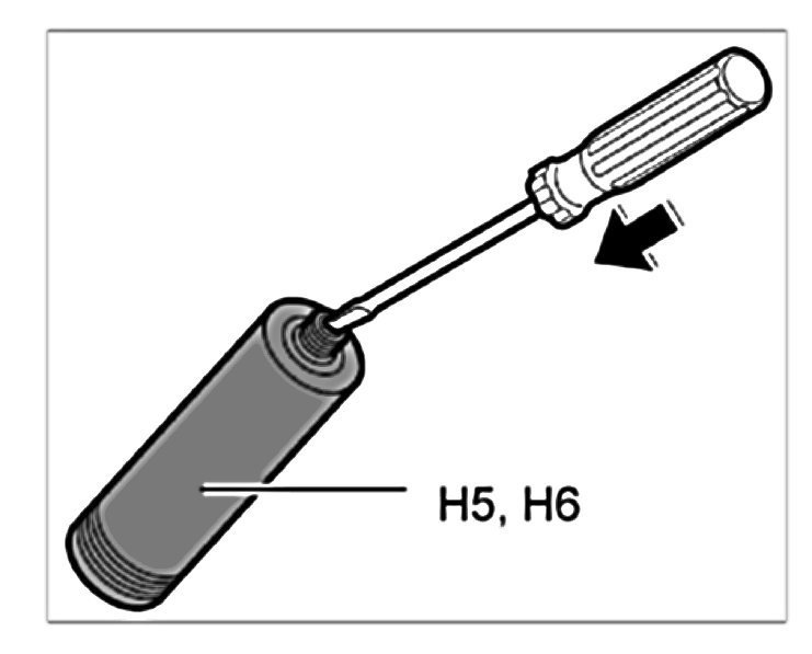 1.1. Pierce the membrane in the nozzle connection of components A and B (aluminium cartridge) -H5- with a screwdriver and extend the opening. Remove flanged cover on end of cartridge.
