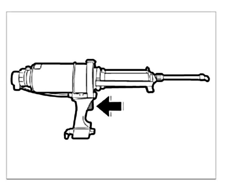 5.1. By activating the valve -arrow- allow the pressure piston to move out slowly until the adhesive is visible in the processing pipe.