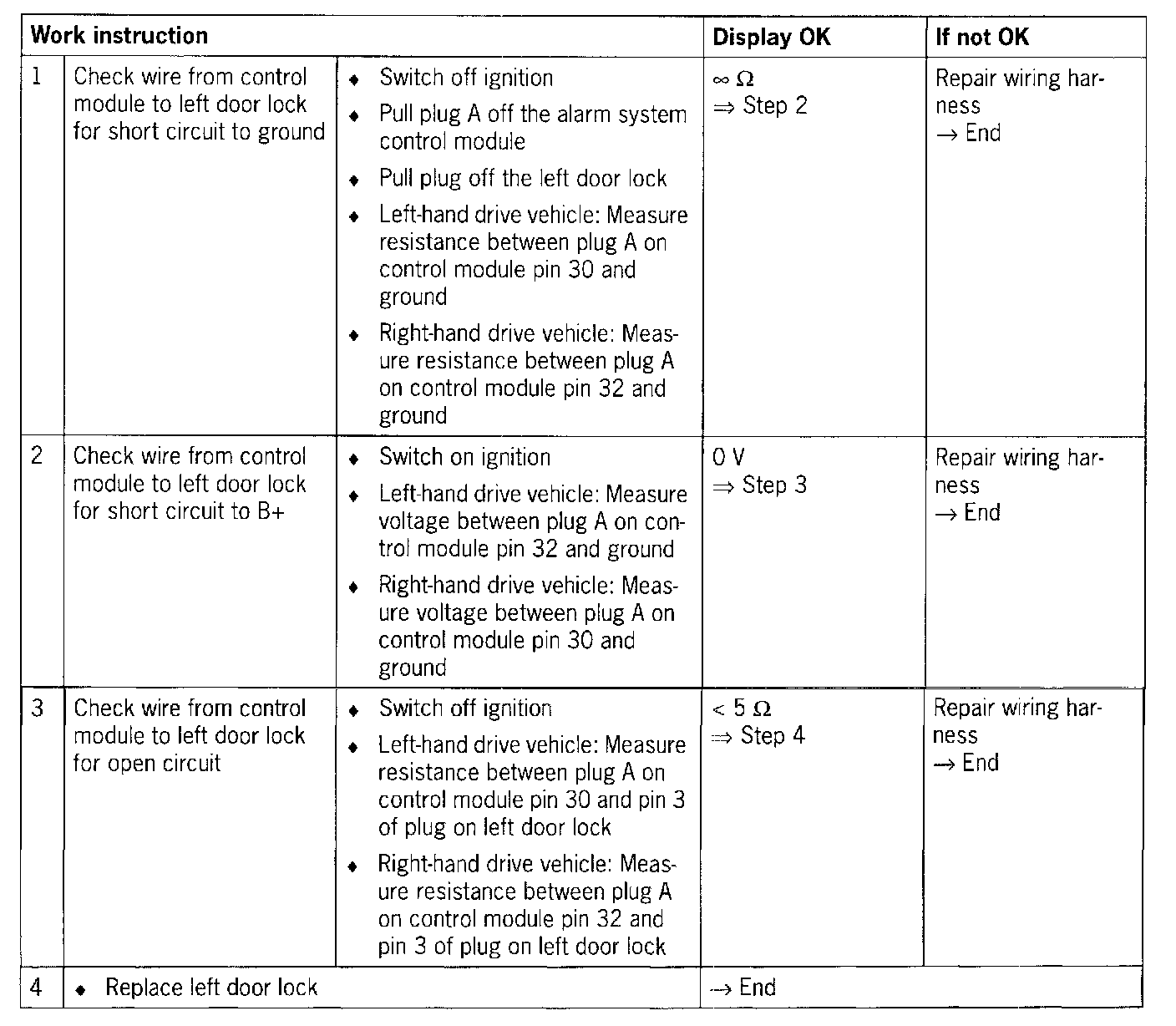 - Short circuit to ground in the wiring between the alarm system control module and the left door lock