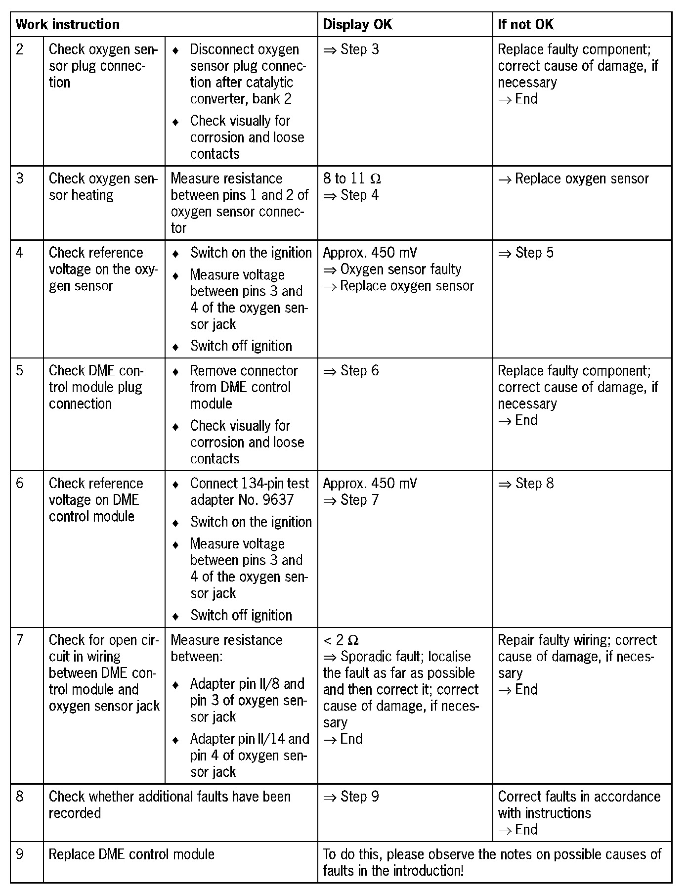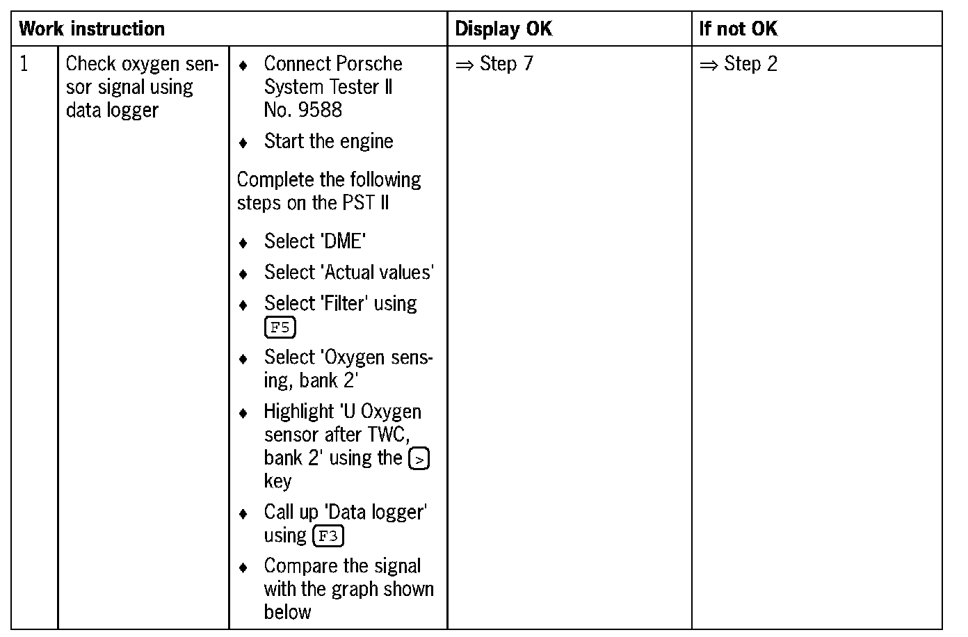 NOTE: Do not use contact spray on the oxygen sensor plug connections as this may cause irreparable damage to the wiring (contamination of the oxygen sensor via the reference air channel).