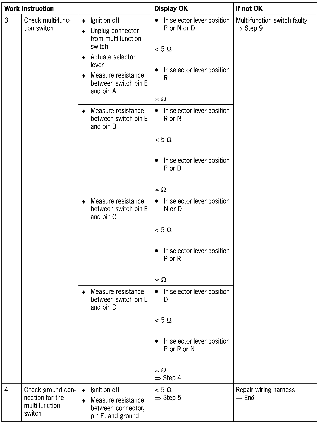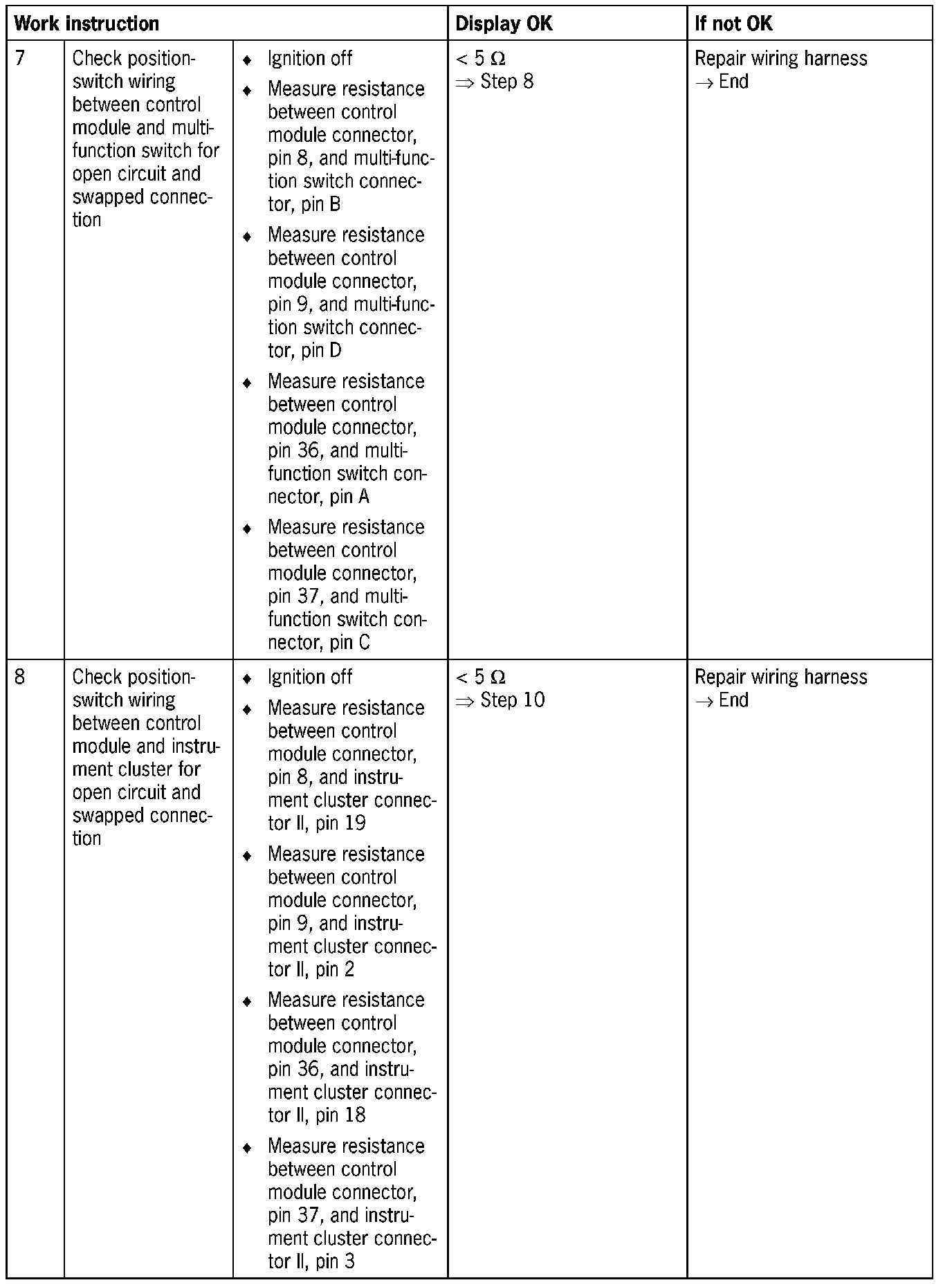 - Short circuit to ground/B+/mutual short circuit or open circuit between control module and multi-function switch