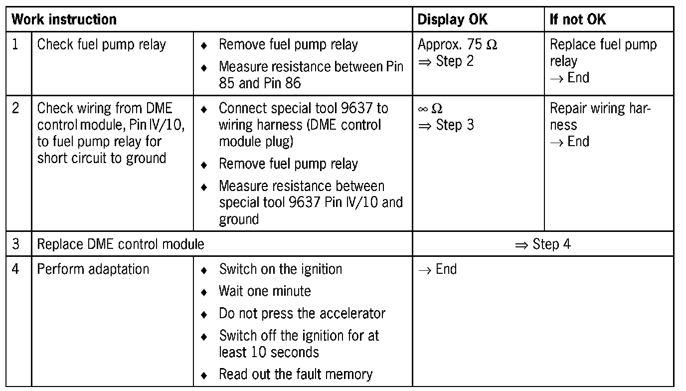 167 Fuel pump relay output stage - open circuit