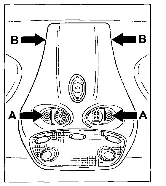 3. Unclip sensor holder at the rear left and right -B-, push forward towards the windshield and remove.