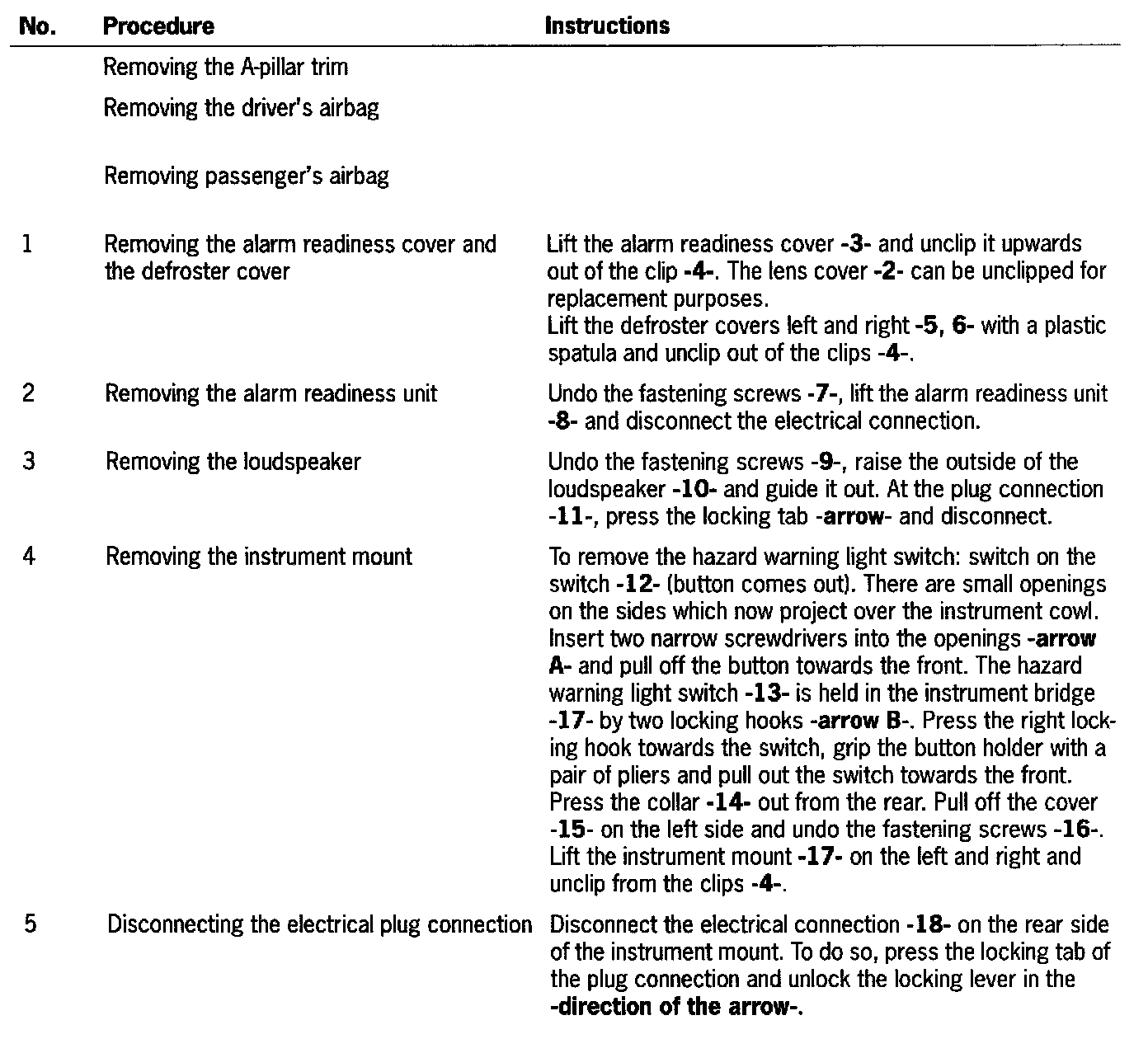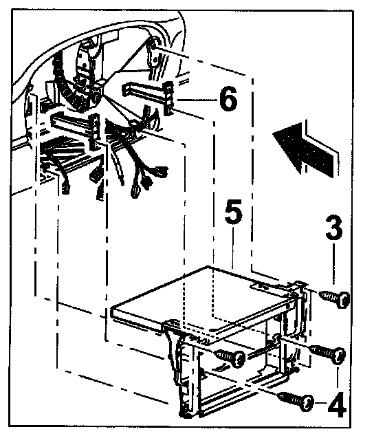 Position the frame -5- on the instrument panel and secure with the fastening screws -3-.