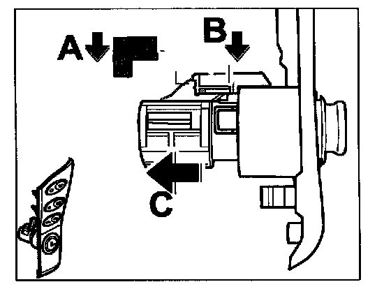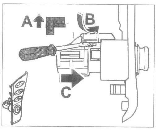 2. Press the lights bracket -arrow B- out to the side with a narrow screwdriver.