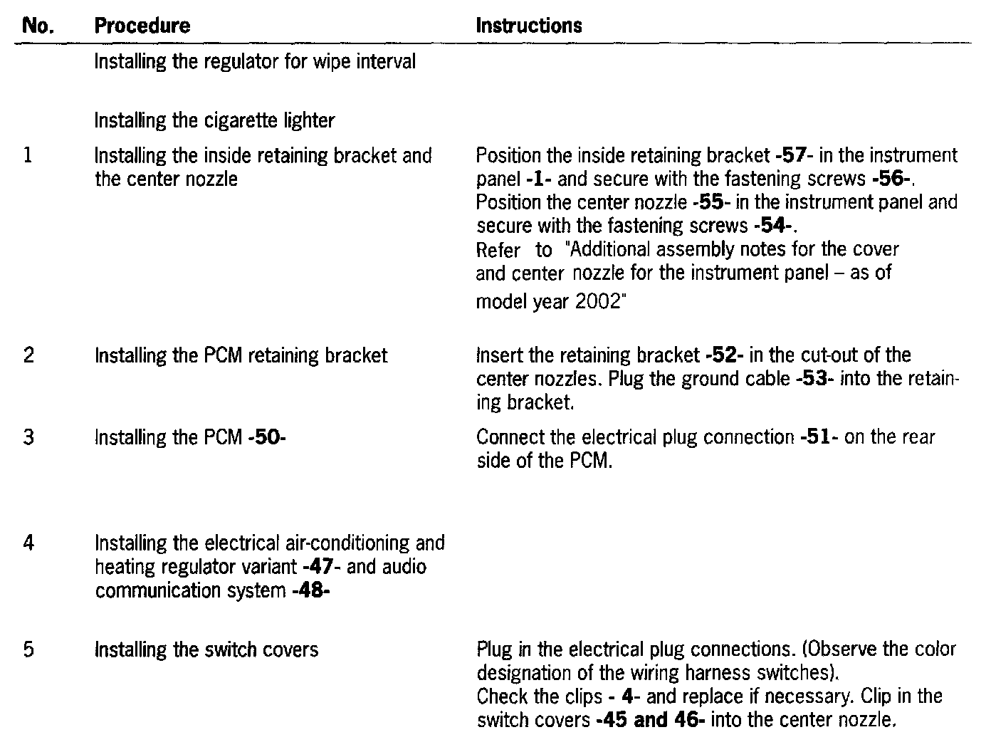 Additional Assembly Notes For The Cover And Center Nozzle For The Instrument Panel - As Of Model Year 2002