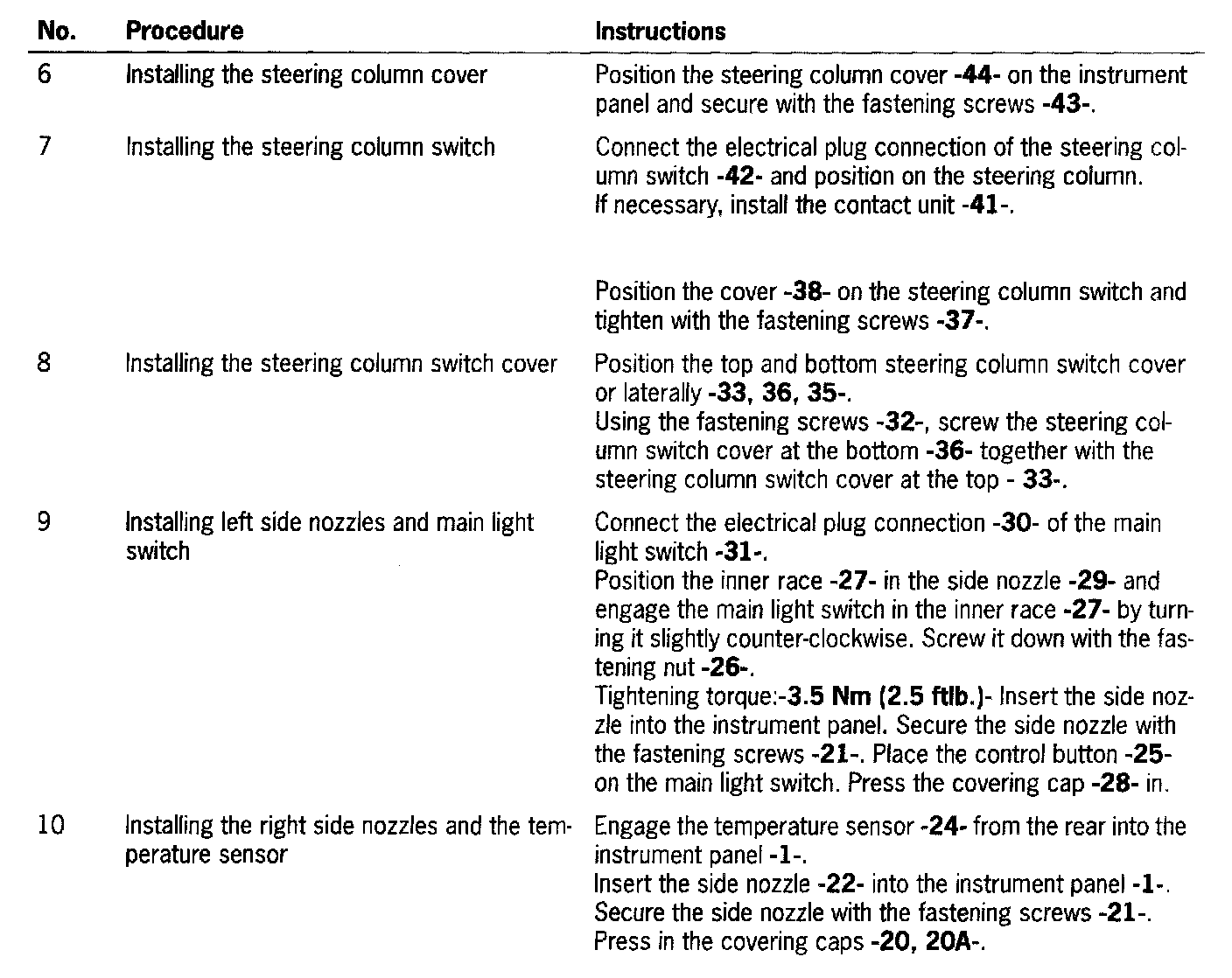 - Installing Cover And Center Nozzle For The Instrument Panel