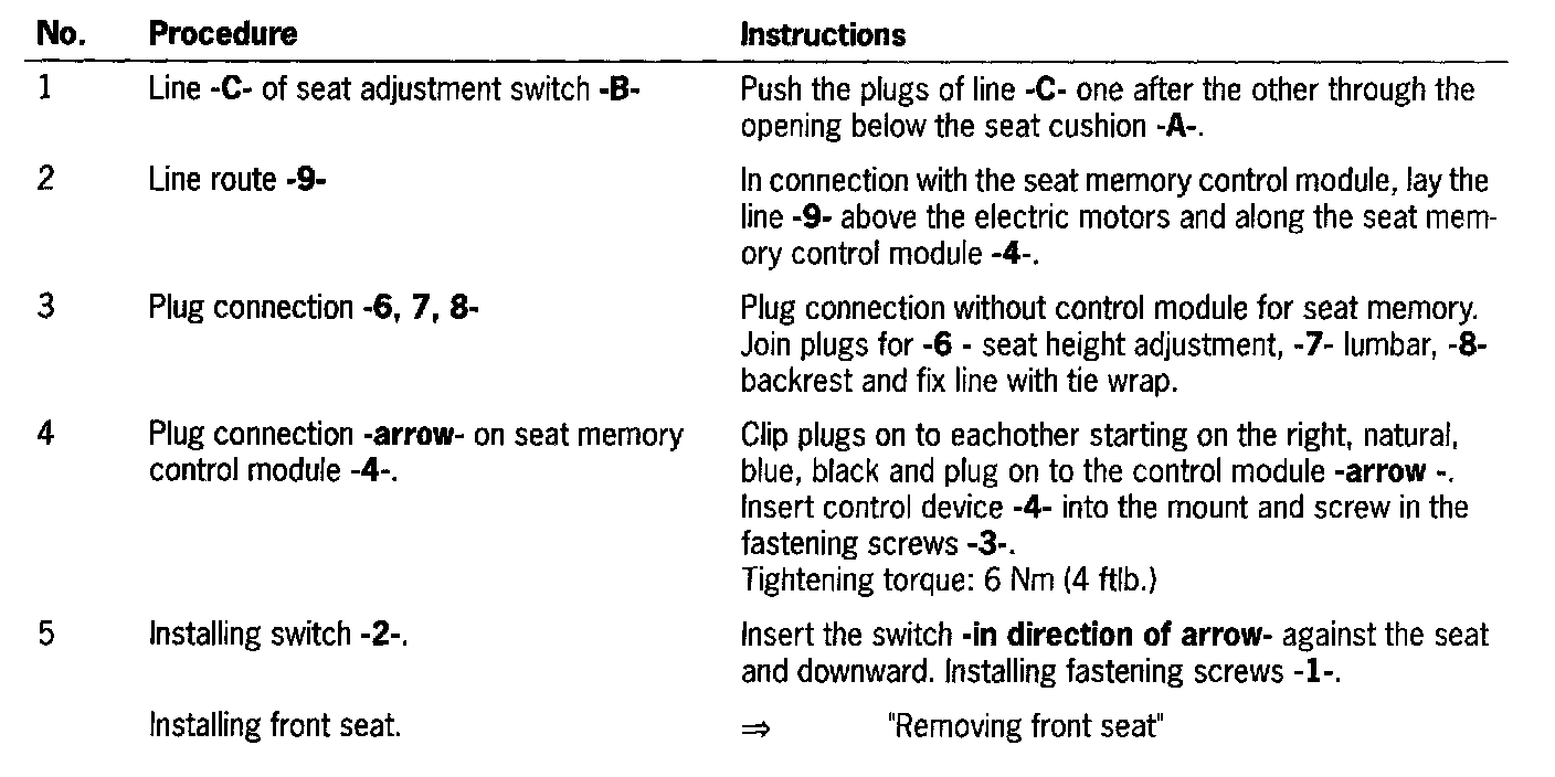 Removing and Installing Switch For Seat Adjustment