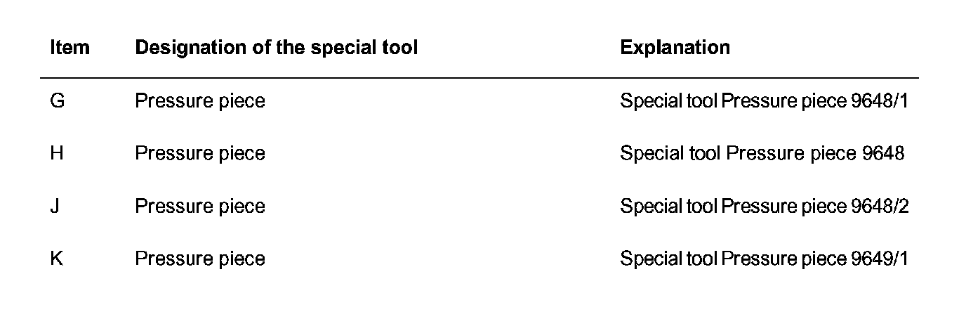 2. Drive in ball sleeves (no. 8 and 11 in overview) with special tool pressure piece 9648. Use long side (installation depth 1.4 mm) of the special tool.