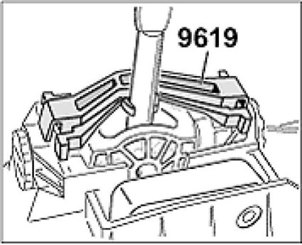 2. Move shift lever to neutral position and fix with special tool (locking bridge) 9619.
