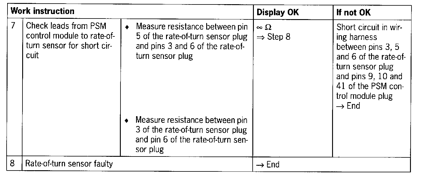 The following troubleshooting procedure applies to the rate-of-turn sensor 996.606.145.00 as of 08/00.