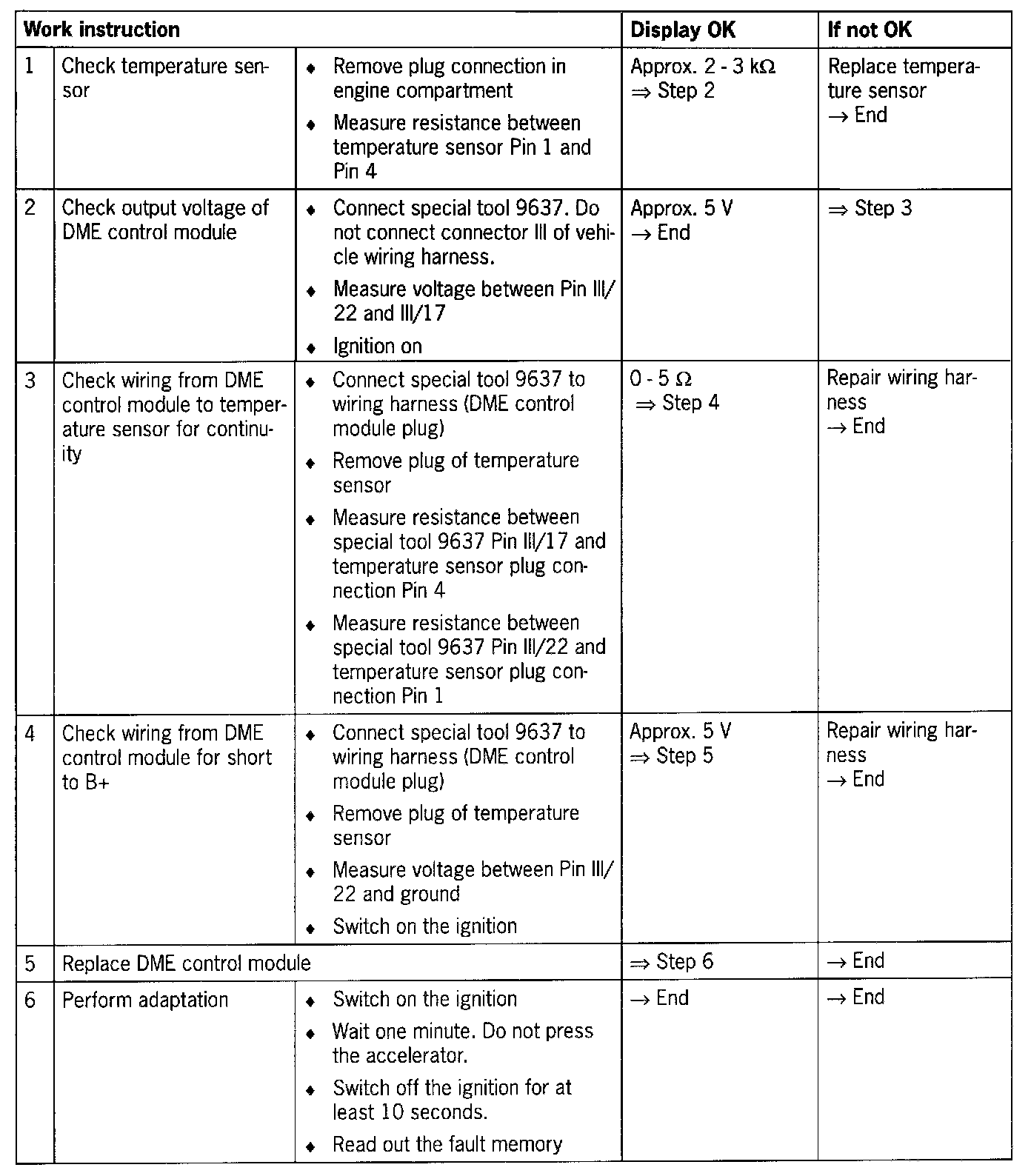 - A fault is recorded after a debounce time of 0.4 seconds if an engine temperature of less than -45 °C is measured.