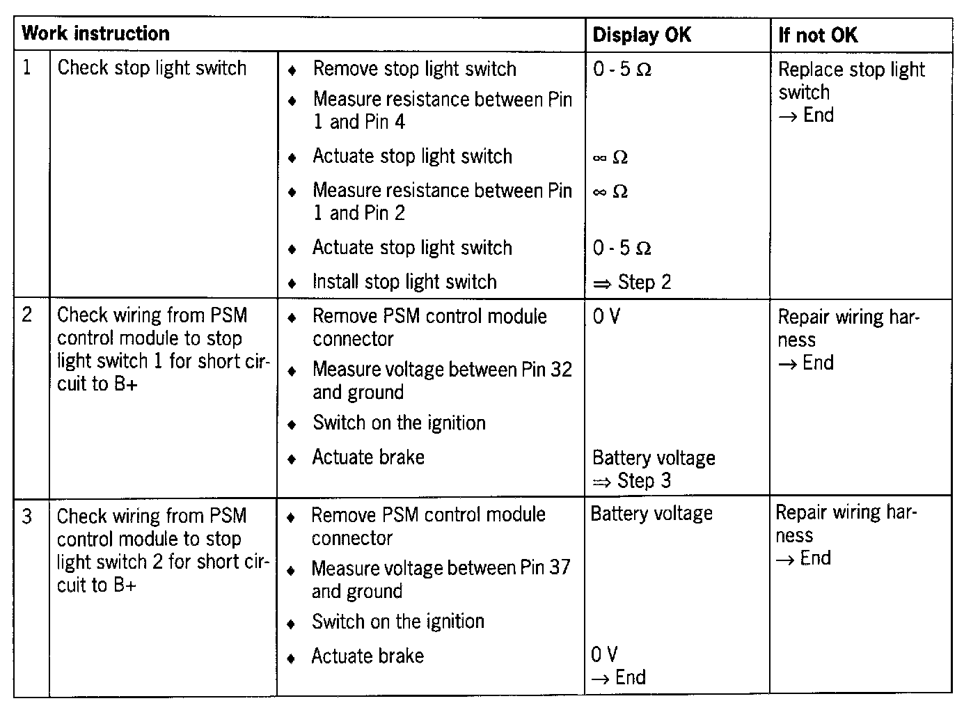 NOTE: The DME control module receives the signals from the stop light switches via CAN bus.