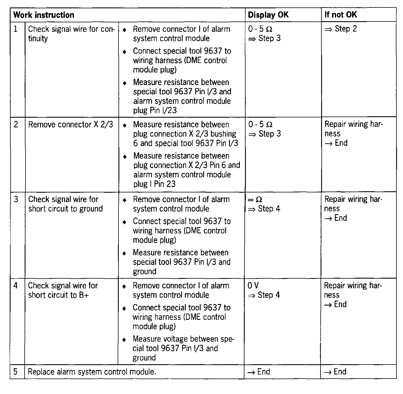 - Open circuit in wiring between DME control module and alarm system