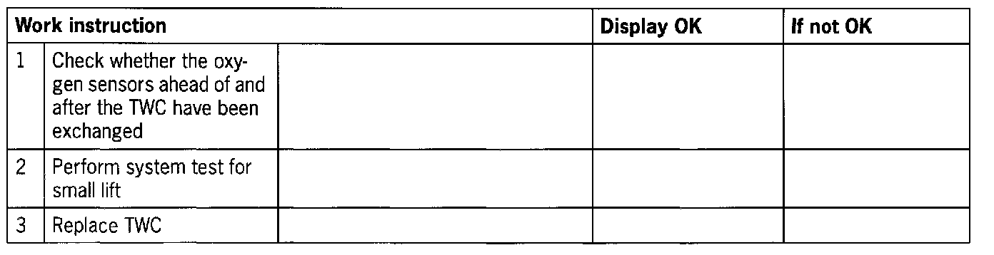 NOTE: If an aging oxygen sensor is recorded in conjunction with a fault in the TWC, a check must be performed with a new oxygen sensor to see whether a TWC fault is still indicated.