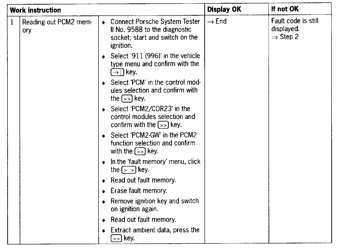 NOTE: The plug connections of control units connected to the CAN-Bus Comfort are disconnected for troubleshooting. This causes additional CAN-relevant fault codes, e.g. "8005 instrument cluster," "800A air conditioning" to be stored in the PCM2 fault memory. These fault codes should be initially ignored and should be deleted on completion of the troubleshooting.