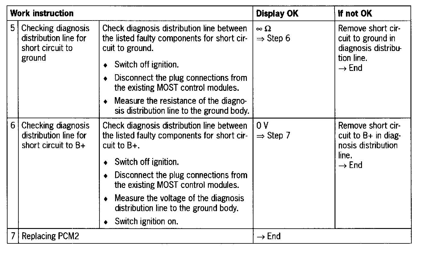 - Diagnosis distribution line: short circuit to ground/ B+ or open circuit