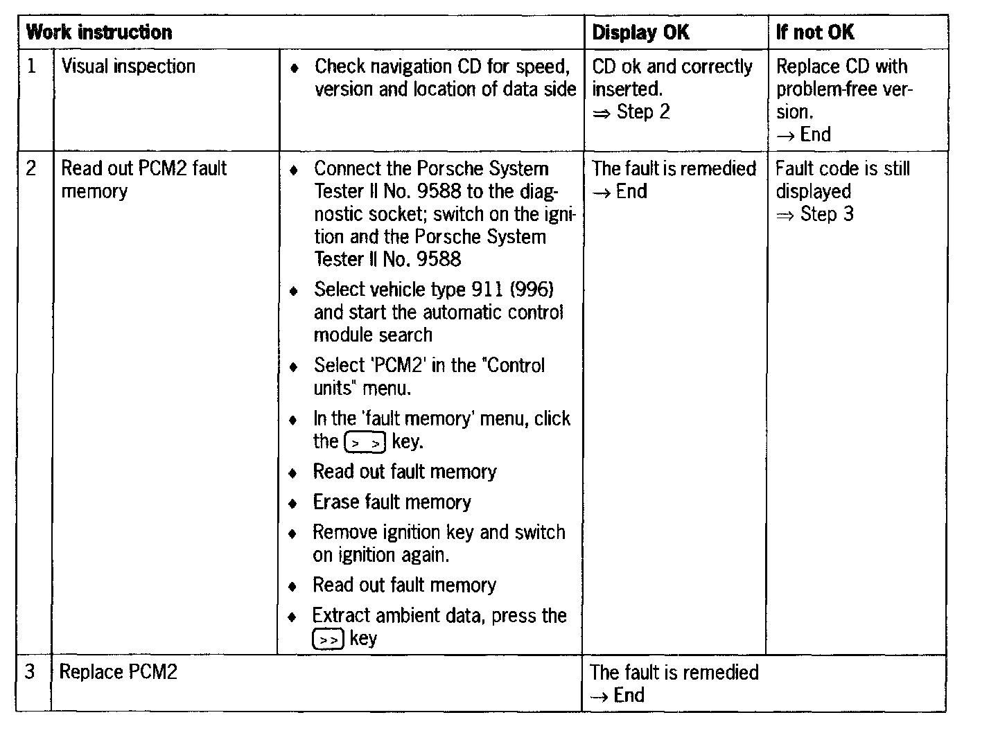 - Fault code 8003 is recorded in the PCM2 MMI if the operating buttons are actuated for longer than '≥ 1 minute'.
