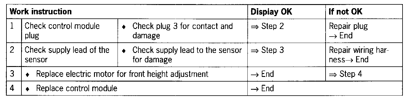 - Open circuit in supply lead to hall-effect sensor for front height adjustment