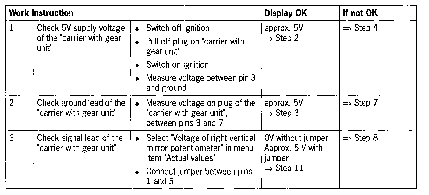 - Open circuit in supply lead to pot. for right rearview mirror, vertical
