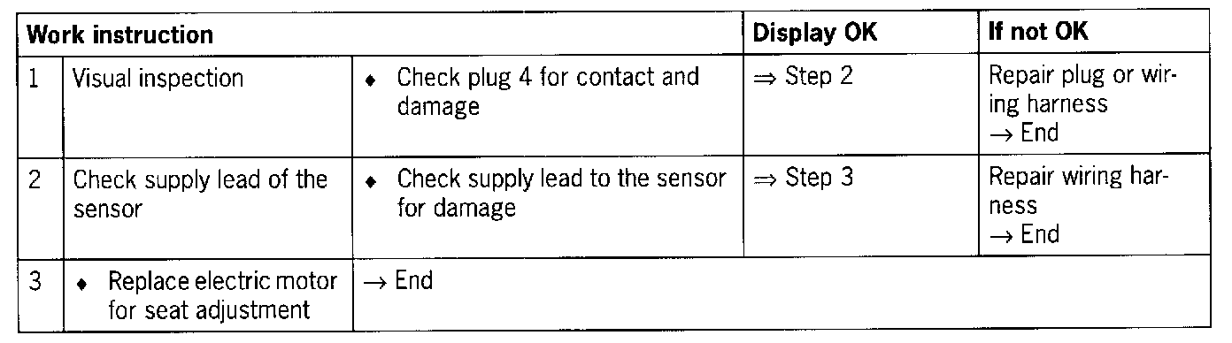 - Open circuit in supply lead to hall-effect sensor for fore-and-aft adjustment
