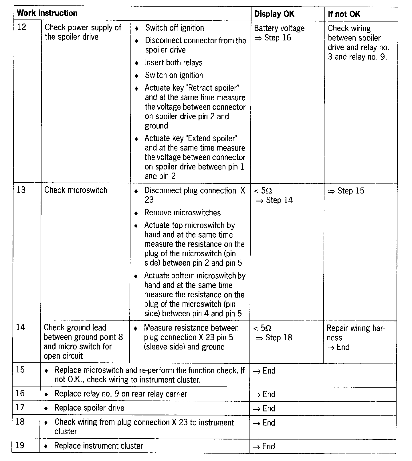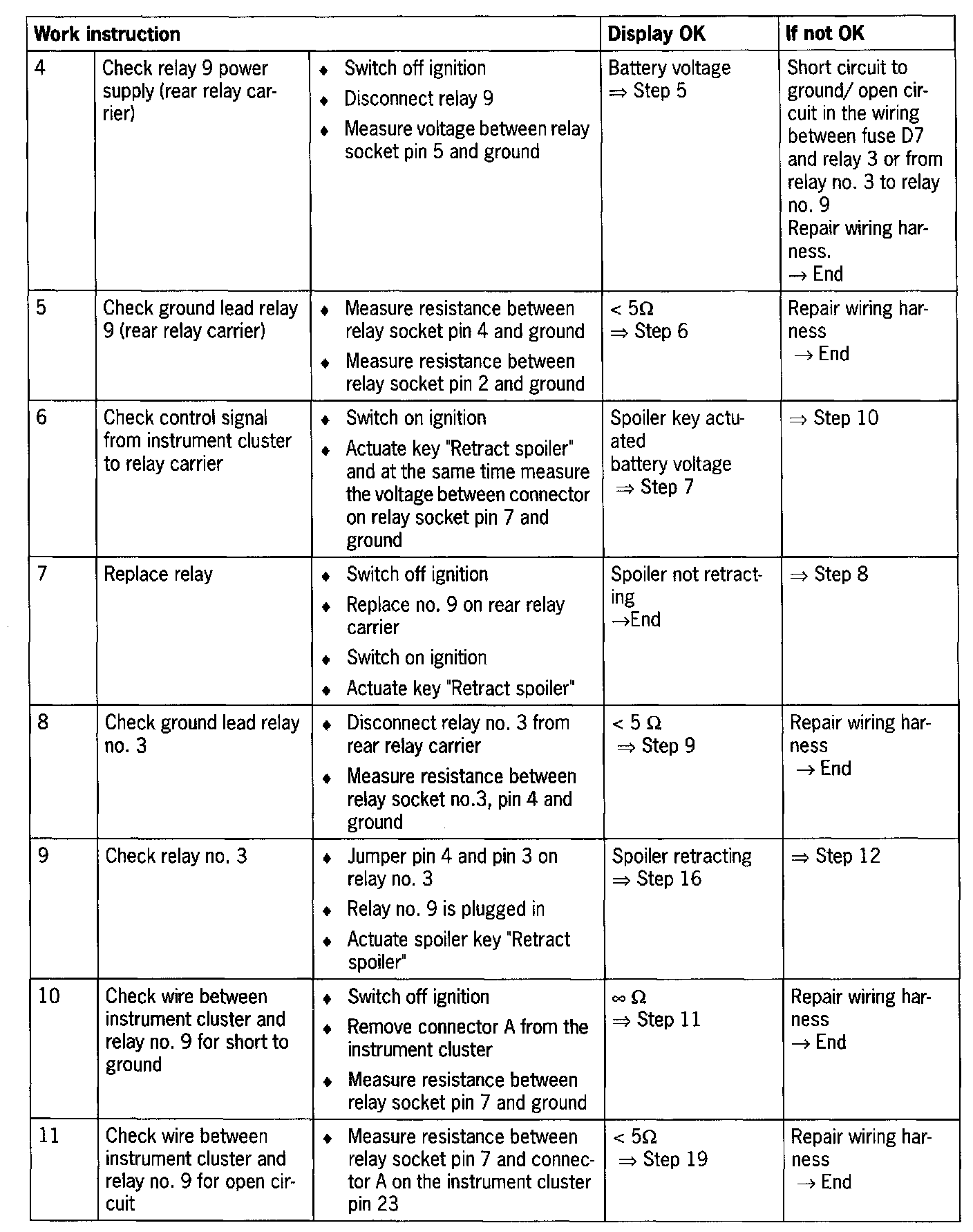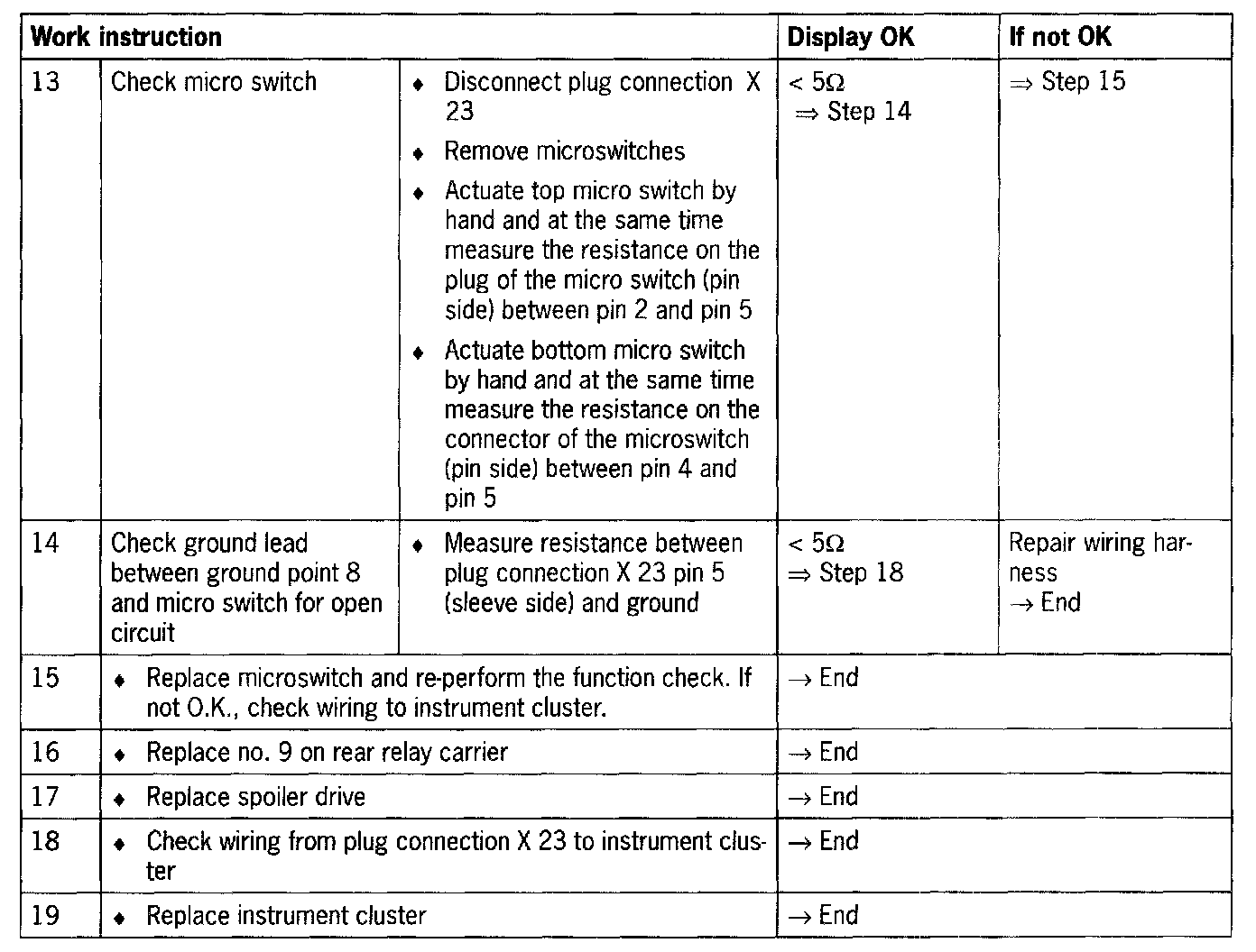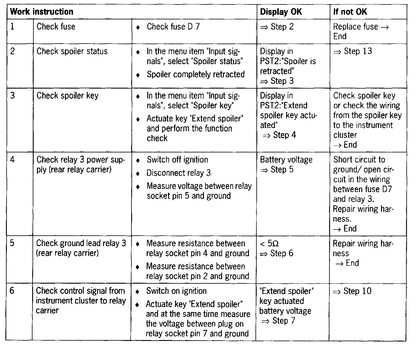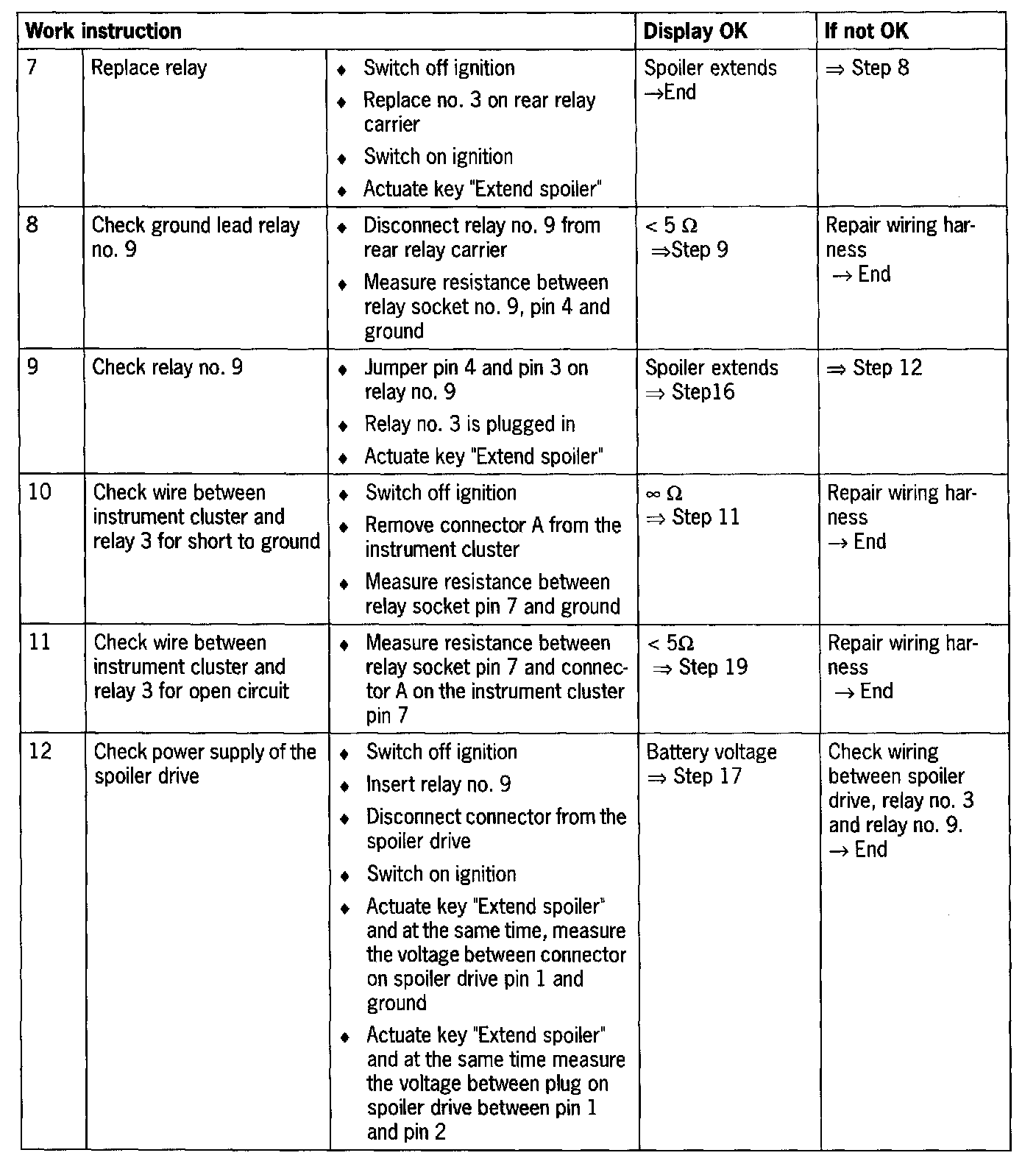 - Short circuit to ground/open circuit in the wiring between instrument cluster and relay carrier or spoiler control