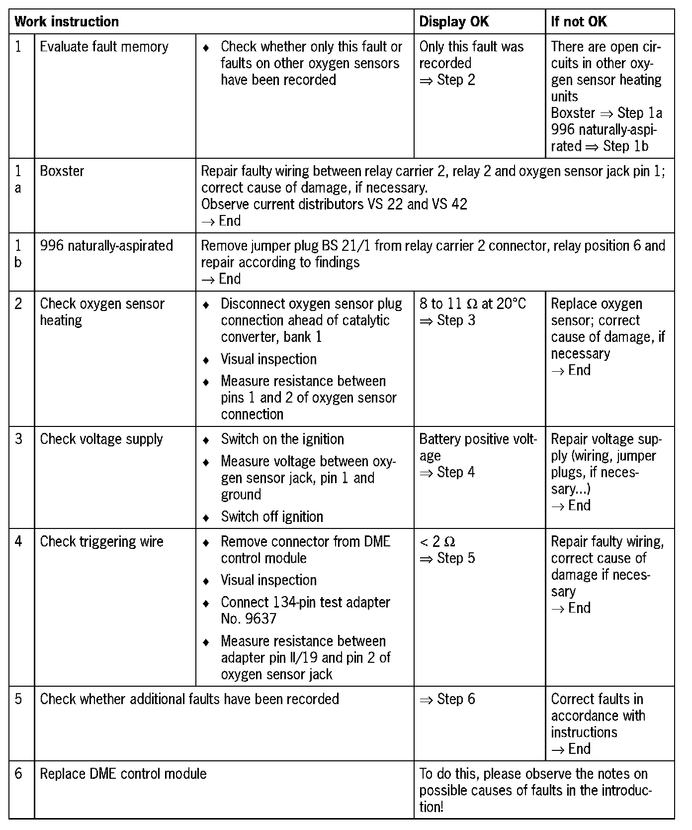 NOTE: Do not use contact spray on the oxygen sensor plug connections as this may cause irreparable damage to the wiring (contamination of the oxygen sensor via the reference air channel).