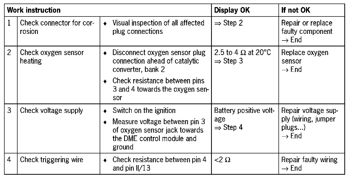 DME control module, connector II, pin 13 and oxygen sensor jack ahead of catalytic converter, bank 2, pin 4